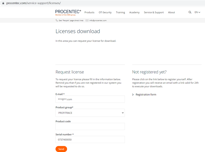 2.登录网站,第一次使用请先注册。填写邮箱,设备组,序列号,点击“Send”。