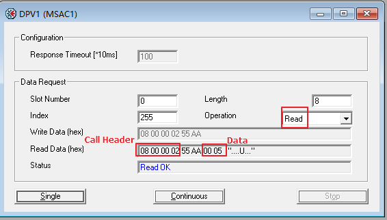 主站使用DP-V1 read服务(0x5E),查看写入操作是否成功