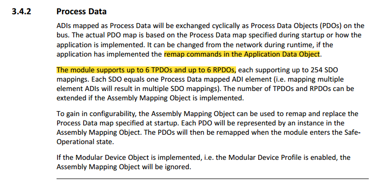 详情参考英文手册3.4.2小节、第4章节,实现多个PDO定义需要使能Remap功能以及Assembly Mapping Object (EBh)对象(详情请参考《Anybus CompactCom 40 - Software Design Guide》13.7.5小节)。